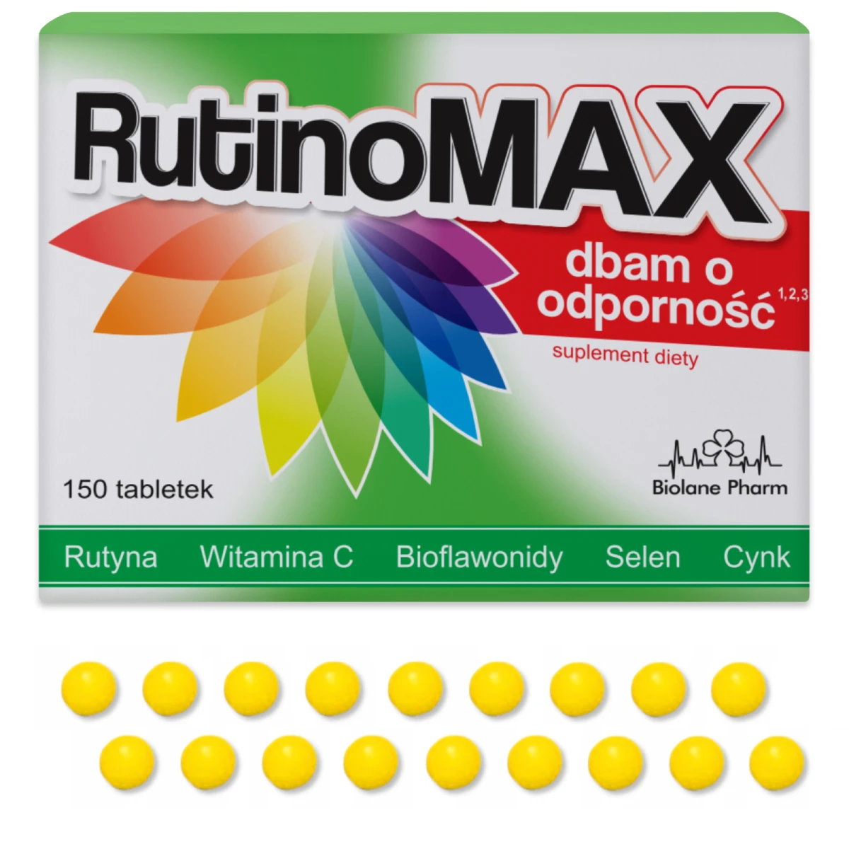 Czujesz, że Twój organizm potrzebuje dodatkowego wsparcia w sezonie infekcji? Rutinomax to przemyślane połączenie składników stworzone, aby wspierać prawidłowe funkcjonowanie Twojego układu odpornościowego. To więcej niż klasyczna rutyna z witaminą C. Dzięki połączeniu czterech aktywnych składników – rutyny, witaminy C, cynku oraz selenu – Rutinomax pomaga również w ochronie komórek przed stresem oksydacyjnym, co jest ważne dla utrzymania dobrej kondycji organizmu.